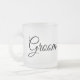Celebrate the groom with this sleek frosted glass mug featuring the word “Groom” printed on both sides, making it perfect for right- or left-handed use.