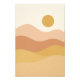 This minimalist abstract landscape poster features soft layered hills in warm tones of terracotta, blush, clay, and golden yellow beneath a glowing sun. With its mid-century modern aesthetic and calming neutral palette, this warm sunset wall art adds a cozy, serene atmosphere to bedrooms, living rooms, studios, or any modern home décor space.