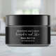 un étiquette minimaliste de bain et de soins du corps avec un arrière - plan noir et un texte blanc.