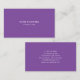 Carte de visite avec un design simple et minimaliste violet.
