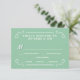 Mangez, buvez et soyez mariés — invitation de mariage campagnard rustique de style Vintage personnalisée Cartes de réponse RSVP — rouleaux Tourbillonnant, bouclés et typographie à boiseries de mode ancienne en blanc éclatant sur arrière - plan vert menthe pastel. Ajoutez les noms de mariée et de mariée et de mariage et les dates de réponse dans ce modèle facile à utiliser. Un style élégant mais amusant et fantaisiste, rétro écrit à la main peut être facilement modifié pour vos thèmes mariages formels ou semi-formels. Décontracté style champêtre moderne est parfait pour les mariages rustiques branchés avec une touche amusante de charme sophistiqué pour les couples traditionnels. Veuillez nous contacter pour obtenir de l'aide sur la personnalisation si vous avez besoin d'espace supplémentaire pour les détails de votre mariage. Autres tailles et styles disponibles, ainsi que les invitations assorties, timbres-poste, accessoires de coordination et les faveurs de douche.