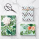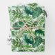 Feuille papier d'emballage moderne, avec feuilles tropicaux et motifs géométriques.