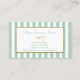 Carte de visite élégant, il présente des rayures blanches et à la menthe avec garniture en parties scintillant dorée et un design en parchemin doré. Idéal pour les maquilleurs, salons de beauté, coiffeurs, organisateur d'événements, décorateur ou designer d'intérieur, coordinateur de mode, consultant et coordinateur mariage, technicien d'ongles, cosmétologiste, esthéticienne, photographe, fleuriste ou toute personne qui recherche un design sophistiqué, glamour et luxe pour leurs cartes de visite. Personnalisez la couleur des élégantes rayures vert menthe luxe en utilisant le bouton Personnaliser.