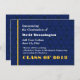 Ce design avec ses accents d'arrière - plan bleu nuit et d'or est un choix élégant pour vos besoins de faire-part de diplôme universitaire. Tout le texte est personnalisable. Le verso peut être modifié si vous souhaitez ajouter des détails de partie à la place. Vous pouvez également modifier la couleur du texte pour un aspect différent. Essayez avec différents papiers pour obtenir juste le look que vous voulez.