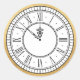 Cet autocollant rond comporte une horloge noire avec des chiffres romains sur un arrière - plan blanc. Autour du bord de l'autocollant est une fausse bordure en or. Parfait pour le Nouvel An ou toute autre réunion formelle.
