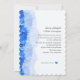 Blue hydrangea 5x7 invitations personnalisées. Des fleurs bleues bordent le bord et une partie de l'arrière - plan avec du texte de script de police gris foncé "kaufman" en lignes modèles pour customiser facilement. Un minuscule coeur de fleurs bleues se trouve au fond de la ligne "réception" et peut être supprimé.