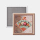Impression miniature d'art vintage sur un aimant. Ventilateur à fleurs et cherub pour dames de l'époque victorienne encadré sur un fond de papier d'écriture ancien. Il y a 5 autres images de fleurs à choisir dans cette série. Collectez le jeu. Créé avec des oeuvres de Cajoline et Lilach Oren