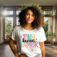 Une grande chemise surdimensionnée (plus de taille) qui est une option agréable pendant la grossesse, ce design coloré a écrit à la main le texte épelant "Tiny Human Tamer" en lettres multicolores. De petites marguerites aux visages souriants sont éparpillées autour du design. Cette coordonnées de design de t-shirt fait partie d'une collection de baby showers "Tiny Human Shindig" correspondante. D'autres styles et tailles de chemises sont disponibles avec ce design.