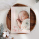 Elégante et moderne carte de thème de Noël avec un texte typographique qui dit "petits orteils grande joie". C'est une carte faire-part de naissance pour les saisons de vacances ! Ajoutez vos photos, vos statistiques de naissance et un message ! L'arrière - plan est la pêche.