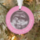 Annoncez les nouvelles excitantes avec cet ornement photo à ultrasons/sonogrammes personnalisé avec une photo de l'échographie de votre bébé sur le devant, et votre photo de famille sur le dos. C'est parfait pour ceux qui veulent utiliser un ornement comme faire-part de bébé ou partager les nouvelles comme cadeau de Noël. Il présente la citation, "Notre miracle dans la fabrication" en écriture manuscrite écrit à la main sur le devant avec l'année, et votre propre photo sur le dos avec le nom du bébé et la date d'échéance. C'est la meilleure façon de vous annoncer à vos amis ou à vos proches la joie de votre petite fille qui vient dans votre monde.