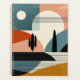 Paysage abstrait d'une scène désertique aux lignes et aux formes dans les tons marron, orange, turquoise, beige, bronzé et noir.