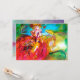 Personnage coloré, fantaisiste et vibrant de masquerade vénitienne. Une belle femme blonde sophistiquée est assise avec une rose rouge et un masque à plumes à la main, avec des tissus dorés et fuchsia scintillants d'un costume de bal masqué baroque avec des plumes et un chien. Peinture à l'aquarelle avec des couleurs vives en jaune, bleu, rose, vert, paillettes dorées et feuille d'argent, inspirée des personnages de la Comédie de l'Art (Commedia dell'Arte), du Carnaval de Venise et des masques à plumes vénitiens. Ce design cool et artistique est parfait pour les mariages, les cérémonies de noces, les douches de mariée, les anniversaires de 16 ans, les fêtes de quinceañera, les soirées costumées d'Halloween, les bals costumés, les