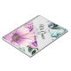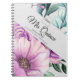 Ajoutez votre propre texte à ce livre d'or moderne et élégant Mis Quince, Quinceanera, espagnol, avec des fleurs violettes aquarelles et des feuilles vertes menthe.