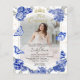 Découvrez l'essence de votre fête de Quinceañera avec nos invitations photo sur le thème de la tiare et des papillons. Créez des souvenirs magiques avec des motifs floraux bleu roi aquarelle entrelacés de confettis pétillants, tous logés dans un cadre géométrique moderne. Ces invitations enchanteurs donneront le ton pour une célébration inoubliable.