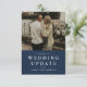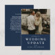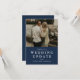 Vous avez besoin d'annuler ou de reporter votre mariage ou événement en raison d'une catastrophe malheureuse? Pandémie ? Hurricane Supadupas? Mort dans la famille ? Envoyez un avis à vos amis et à votre famille avec ce carte photo simple et de bon goût. L'arrière comprend un grand bloc de texte personnalisé avec le libellé suggéré. Il y a aussi de la place pour la signer. L'avant est orné d'un arrière - plan bleu marine avec un texte blanc. Les couleurs peuvent être modifiées en cliquant sur personnaliser. Idéal pour les mariées covides et les couples coronavirus.