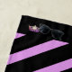 Cette serviette de plage est montrée dans un arrière - plan noir avec des rayures de couleur rose orchidée audacieuses et avec l'imprimé d'une couronnes rose orchidée brillante aux extrémités opposées. Personnalisez avec votre nom, titre de concours ou phrase préférée. Customisez cet objet.