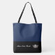 Ce grand sac fourre-tout élégant et mignon est présenté dans le style de bloc de couleur marine et noir avec une couronne de concours et texte personnalisé. Customisez ce point et changez le texte à votre place.
