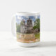 Conception de tasse unique avec Mission Concepción, situé à San Antonio, Texas. Une photographie du panneau d'entrée avec les clochers et un détail de la croix de fer et du clocher.