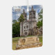 Photographie colorée de la signalisation d'entrée de Mission Concepcion avec l'architecture majestueuse de l'église du XVIIIe siècle. Un ornement carré recto verso avec des photos différentes de chaque côté. Ajustez l'année au besoin.