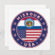 Badge du Missouri avec drapeau du Missouri et drapeau des USA couleurs, forme arrondie. Emblème du Missouri. Sceau du Missouri. Collection USA Etats.