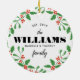 Un classique de vacances, cette couronne de saints et de métis encercle votre monogramme familial et le type noir classique, tandis qu'au fond elle encercle vos noms de famille et l'année où votre famille est devenue une.
