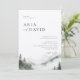 Elégante aquarelle misty forêt de pins de montagne, faire-part de mariage. Modèle de style design de typographie moderne et simple avec détails modèle sur le dos.