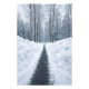 A foggy winter forest path with fresh snow and soft mist creates a tranquil Scandinavian-style landscape. A perfect image to enhance the coziness and comfort of your home, cottage, or interior.