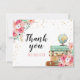Manière merveilleuse du ♥ A de remercier vos invités ! Carte de remerciements avec un thème de voyage et fleurs en rose et or.