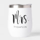 Un chic gobelet à vin thermique Mme avec une écriture noire moderne et audacieuse avec un monogramme de nom de famille personnalisé en dessous. Le gobelet blanc propre avec un lettrage noir expressif fait un beau cadeau pour la mariée. Idéal pour la préparation du jour du mariage, les célébrations de l'enterrement de vie de jeune fille ou les voyages de lune de miel. Se marie parfaitement avec le gobelet Mr assorti. Tout le texte est entièrement personnalisable.