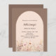 Une élégante invitation fleur sauvage. Mocha, arrière - plan marron muet et arche beige. Décoré de fleurs sauvages couleur eau dans le beige, rose. 1 feuille = 1 invite imprimé bord à bord.