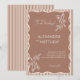 Célébrez votre journée spéciale avec ce faire-part de mariage de griffes moderne, avec une bordure ondulée dessinée à la main et des bords cahotés. Le design ludique est mis en valeur par des éléments botaniques délicats et des rayures de style rétro, encadrées dans un design chic de couleur mocha. Cette invitation allie élégance moderne et charme vintage, parfait pour les couples à la recherche de quelque chose d'unique et intemporel. Tout le texte est entièrement personnalisable, ce qui vous permet de modifier les polices, les couleurs et les détails du mariage en fonction de votre style personnel. Disponible en plusieurs variations de couleurs pour correspondre parfaitement à votre thème.