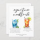 Cette feuille de menu chic de mocktails propose une simple typographie noire au-dessus de 2 boissons mignonnes et leurs ingrédients pour votre bar mariage d'été. Une boisson Blue Hawaiian Sunrise et une boisson non alcoolisée Arnold Palmer ajoutent une touche cool à votre menu du bar. Complétez avec les noms du couple et la date de leur réception.