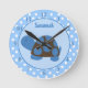 Mod Turtle (Bleu) Horloge murale Ajouter un nom