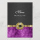 "Modèles de menu" avec les modèles personnalisables des textes. CONCEPTION - cette invitation plate a une belle chaîne d'or encroûtée avec les perles et les diamants, ensemble entre un parchemin de gris de charbon de bois et un pourpre couleur cerise, damassé infusée, arrière - plan de suède de faux. CUSTOMISEZ-LA - changez les mots pour adapter à votre événement spécial, et sentez-vous libre pour changer la la taille et la couleur de la police aussi, en employant la "personnaliser il" bouton. IDÉAL POUR - le mariage "de thème de damassé", douches "nuptiales" de "pourpre et d'or", "noir, or et" anniversaire pourpre, anniversaire, bal d'étudiants, obtention du diplôme, "sweet sixteen", quinceanera et petit déjeuner formel d'entreprise, événements de déjeuner et de dîner, ou fonctions, rassemblements et parties. EN COMPLIMENTANT LA GAMME DES PRODUITS - voyez la gamme complète ci-dessous. DEMANDES FAITES SUR COMMANDE DISPONIBLES de http://www.zazzle.com/mensgifts* de COULEURS - visitez notre magasin de mensgifts pour regarder la gamme complète de couleurs luxueuses dans cette conception - - si vous voudriez cette conception sur un autre produit, ou voudrait discuter tous les changements que vous pouvez exiger, satisfaire jugez que libre pour contacter moi sur clientrequestrw@gmail.com et nous peut discuter vos conditions, et coûts, si s'en appliquent.