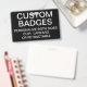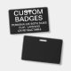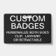 Imprimé sur mesure 3,38" x 2,13" Modèle blanc CLIP MÉTAL. ARRIÈRE - PLAN NOIR, changez de couleur de chaque côté. Concevez, créez, créez les vôtres. Votre photo, image, texte, logo, graphiques en couleur pleine impression de bord à bord sur l'avant et l'arrière - designs horizontaux ou verticaux. Fabriqué en plastique PVC, durable, ne s'estompera pas. Disponible uniquement avec le cordon, le clip métallique, le clip rétractable ou le badge.