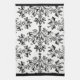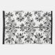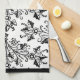Une serviette de cuisine élégante avec marguerite vintage et motif damassé en feuilles en noir avec des bords noirs fins.