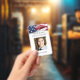 Créez des badges et des étiquettes nominatives personnalisés pour les employés en utilisant un modèle vertical moderne facile à personnaliser avec votre photo, le logo de votre entreprise et d'autres informations importantes. Conception du drapeau américain patriotique. Idéal pour les militaires et les vétérans.