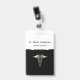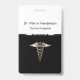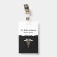 Des badges de bureau médical et d'identification d'hôpital classiques sur un budget conçu avec un symbole de caducée couleur argent et un élément de conception pour un professionnel de la santé dans l'industrie. Créé pour vos employés ou membres du personnel d'un bureau de médecin hospitalier, d'un médecin d'une clinique médicale ou d'un professionnel de bureau dans un établissement médical.