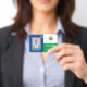 Créez votre propre badge d'identification photo avec ce design simple et polyvalent. Remplacez la photo et le logo d'exemple par les vôtres pour un design personnalisé. La palette de couleurs d'exemple ici est verte, bleue et jaune, mais vous pouvez changer les couleurs de tous les éléments de design pour correspondre aux couleurs de votre groupe ou organisation. Vous pouvez également changer le style et les couleurs des polices pour correspondre à votre logo. Idéal pour toutes les organisations et tous les groupes.