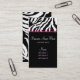 Carte de visite noir et blanc audacieux et attirant d'impression de zèbre avec le point culminant rose. C'est un modèle pour que vous employiez de quelque façon que vous voudriez.