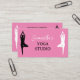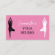 Modèle de carte de visite atelier Yoga avec logo de pose. Couleurs personnalisables. Exemple rose. Disposition professionnelle avec typographie moderne. Couleurs et typographie personnalisables. Idéal pour professeur de studio de yoga, instructeur de pilates, entraîneur personnel, entraîneur sportif, entraîneur de gym, méditation, pleine conscience, enseignements spirituels, guérisseur, salon de beauté et plus encore. Créez des cartes de visite standard pour les travailleurs autonomes, les patrons de départ, les employés, les collègues, les partenaires, les gestionnaires, les amis, la famille, les clients, les invités, etc. Ajoutez vos propres informations d'adresse et le titre du poste. Impression recto verso. Fournitures de bureau personnalisées pour le démarrage d'une nouvelle société. Choisissez parmi différentes qualités, épaisseurs et styles de papier. Impression avec finition brillante ou mate. Changez la quantité pour obtenir les bas prix de l'emballage en vrac bon marché. Silhouette de pose d'arbre calme.