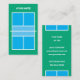 Modèle de carte de visite du coach de Pickleball. Carte sportive personnalisée pour les joueurs, entraîneur, entraîneur sportif, pro instructeur, club, ligue pour enfants, tournoi, formation, clinique, enseignant, école, académie, constructeur de cour etc. Plan bleu vert cour en couleurs personnalisables. Vue en haut du terrain de pickleball avec des lignes.