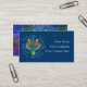 Une tortue de mer verte avec des ailes de flamme vole vers le bas contre les vagues bleues de tourbillonnement d'un résumé. Modèle de carte de visite -- ajoutez votre propre information.