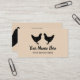 Modèle de carte de visite pour les oeufs frais de ferme de poulet. Cartes de visite personnalisées avec logo vintage de silhouette d'animal de ferme. Icône rustique avec typographie de script pour nom et slogan. Arrière - plan de couleur noir et blanc ou personnalisé. Cartes de visite professionnels pour des professions liées à l'agriculture, l'élevage et l'alimentation. Disponible en différentes tailles, épaisseur du papier et forme arrondie découpée en coin. Changez la quantité pour obtenir le prix de l'emballage en vrac bon marché. Dessin du contour du poulet à la poule noire et blanche.