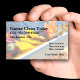 CARTE DE VISITE de service de nettoyage de mamelons modèle en ligne avec l'image d'une gouttière de toit de maison avec des feuilles coincés dans le puits légèrement imprimé comme toile de fond et modèles de texte vous pouvez customiser avec vos propres informations d'affaires.