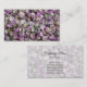 Modèle de carte de visite fleuriste avec photo de bourgeons de fleurs. Élégante typographie script avec image florale personnalisable. Téléchargez votre propre belle photo ou design chic dans l'arrière - plan. Fleur rose lavande colorée et joyeuse photographie rapprochée. Créez des cartes de style pour votre boutique de classe.