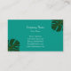 Modèle de carte de visite florale avec feuilles de palmier tropicale. Idéal pour voyagiste, spa de santé, salon de beauté, fleuriste, jardinier ou fleuriste. Élégante typographie de script avec design moderne d'art vectoriel. Couleurs arrière - plans personnalisables, bleu turquoise avec feuilles verts exotiques. Cartes de visite professionnelles pour le magasin. Inspiré par la nature ; Monstera Deliciosa.