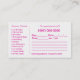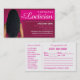 Il s'agit d'un design de carte de rendez-vous pour les stylistes de salon de coiffure et les locataires de la communauté afro-américaine. Les couleurs sont roses et roses chaudes. Image de cadenas. Customisez ce modèle pour le faire vous-même en ajoutant toutes vos informations, y compris vos comptes de médias sociaux tels que snapchat et instagram. Remettez-les aux clients en tant que cartes de rendez-vous.