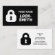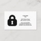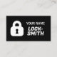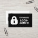Modèle de carte de visite Locksmith avec logo cadenas. Design moderne avec verrou et icône de trou de clé. Créez des cartes couleur personnalisées avec vos coordonnées et le nom de l'entreprise. Carte professionnelle pour magasin, expert en sécurité, stockage sécurisé, magasin et plus encore. Coins arrondis facultatifs.