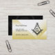 Ces cartes de visite maçonniques faits d'or et de noir viennent sur un modèle que vous pouvez personnaliser et faire les vôtres. N'hésitez pas à distribuer ces cartes d'affaires personnalisées et sophistiquées lors de vos réunions et autres événements de réseautage lodge. Le côté avant est conçu avec le carré et la boussole de la franc-maçonnerie, tandis que le côté arrière a une phrase personnalisable qui, dans l'exemple dit : "To Be One Ask One" (Être quelqu'un demander un). Thème de couleur : noir, or, tons or métallique. Catégorie : maçonnerie, modèles personnalisés.
